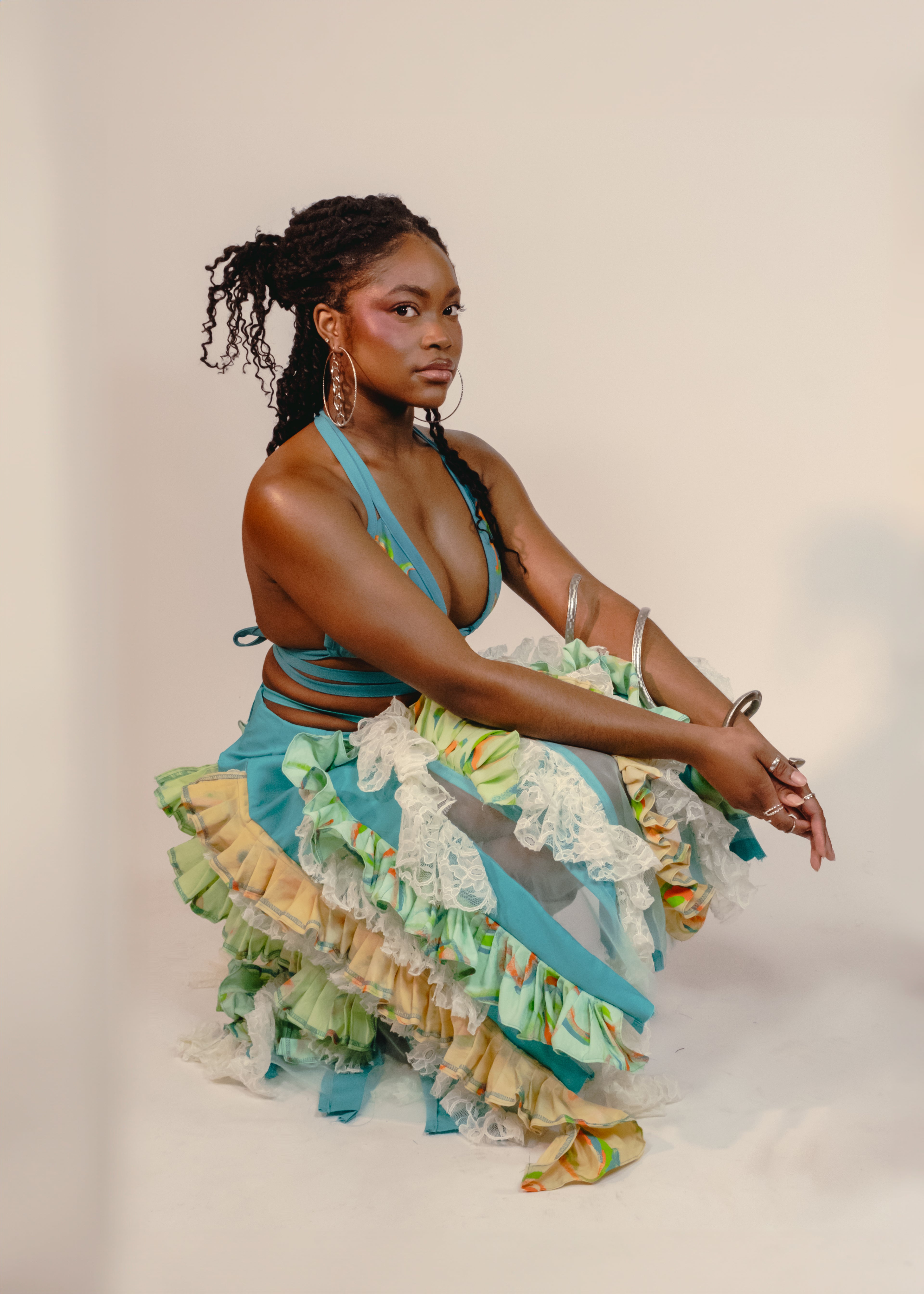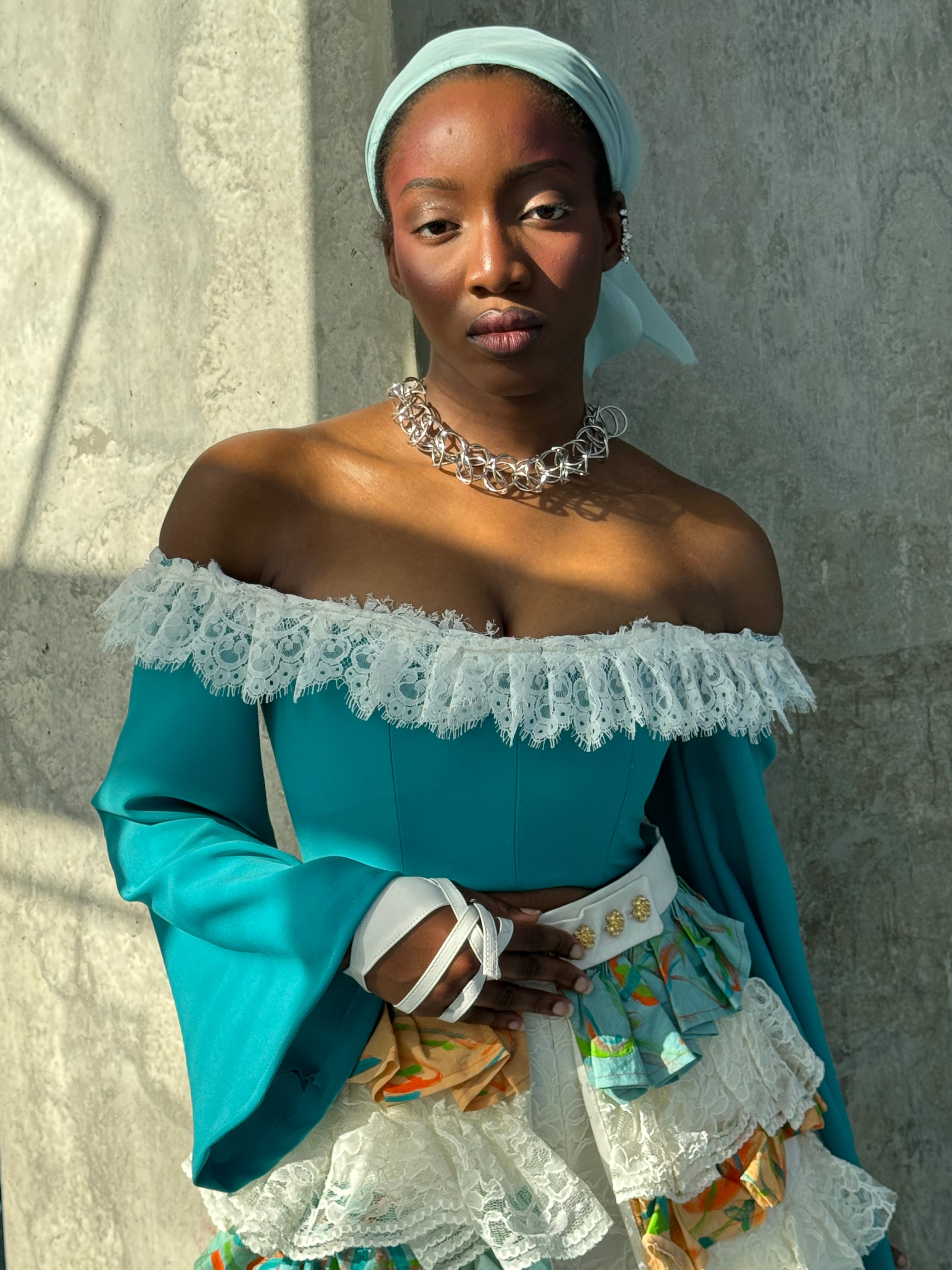 The Caribbean Renaissance draws its inspiration from the Harlem Renaissance. Posing the question of how the Caribbean would look if there was an art movement . This collection delved into the history of national garments, traditional crafting techniques, and the breathtaking natural landscapes. Embracing the iconic madras cloth as a muse. The ruffles are hand-painted and dyed, imbuing the collection with a personal and artistic touch that truly makes it stand out from the rest. Creating an art movement in the Caribbean.