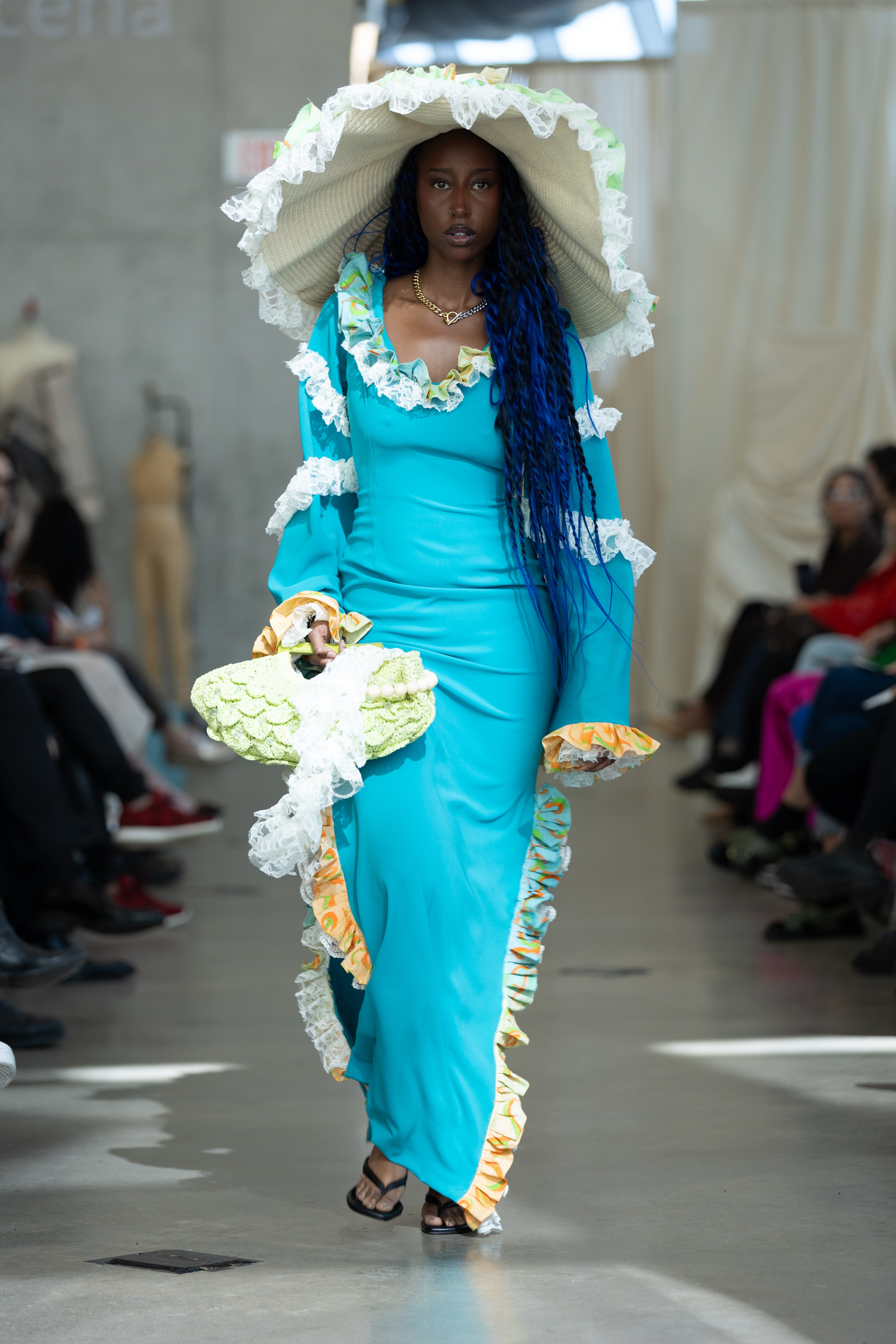 A models struts on the runway at the Mass Exodus Show in 2024.
